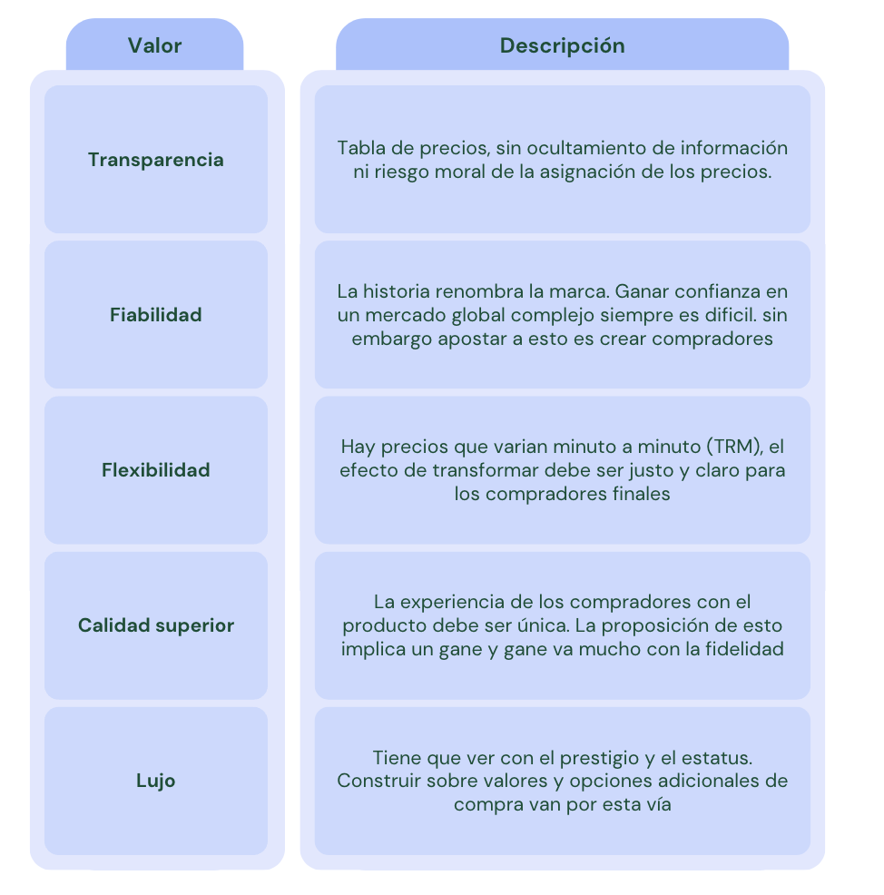 Los clientes raramente toman decisiones con el solo precio. Tienen en cuenta múltiples formas, factores y maneras para finalmente comprar un producto o servicio. Cualquier detalle “extra” es plausible de ser tomado para cobrar un precio mayor y el cliente finalmente acepte, la comparación con los precios de la competencia será relevante.